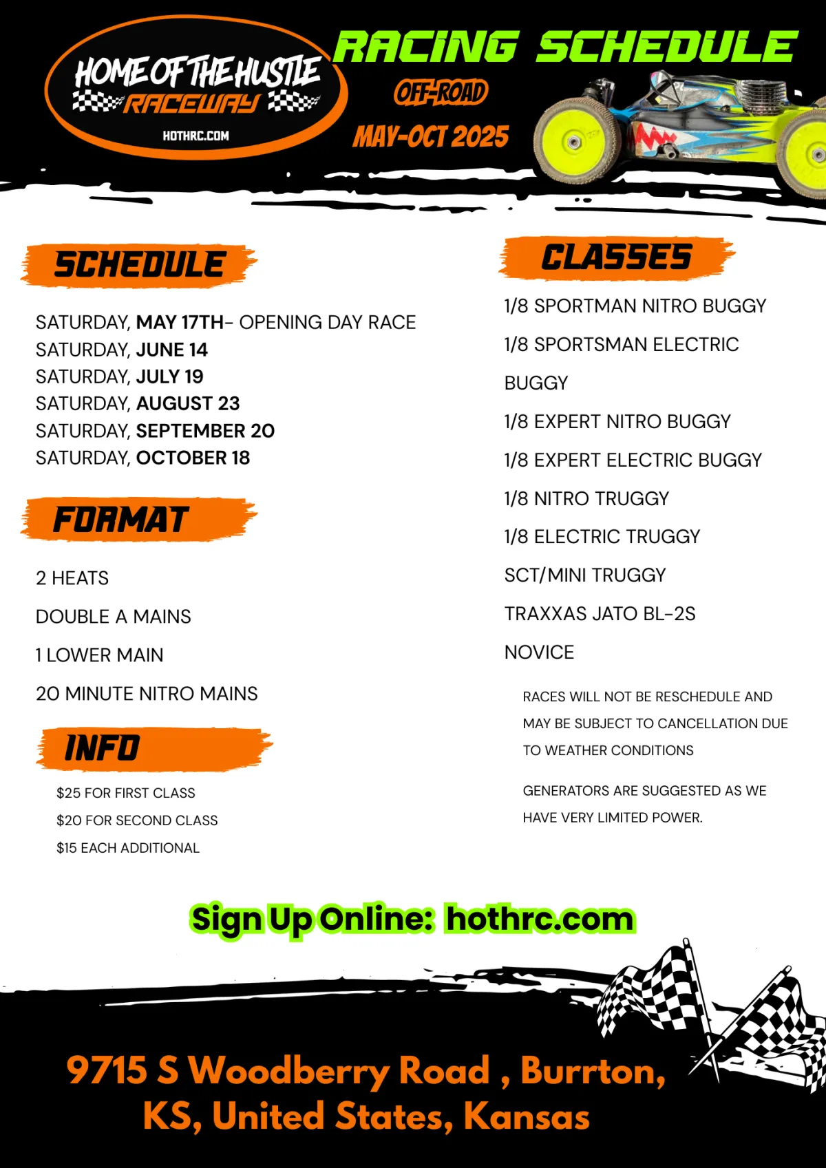 Bring your buggy, truggy, short course, or jalopy—just be ready to run.